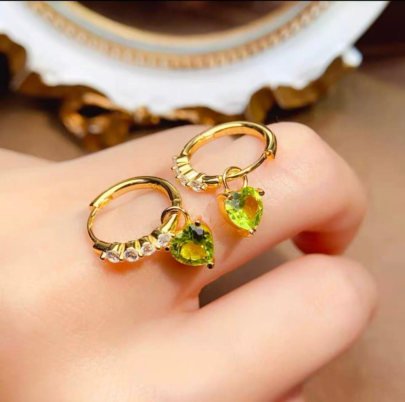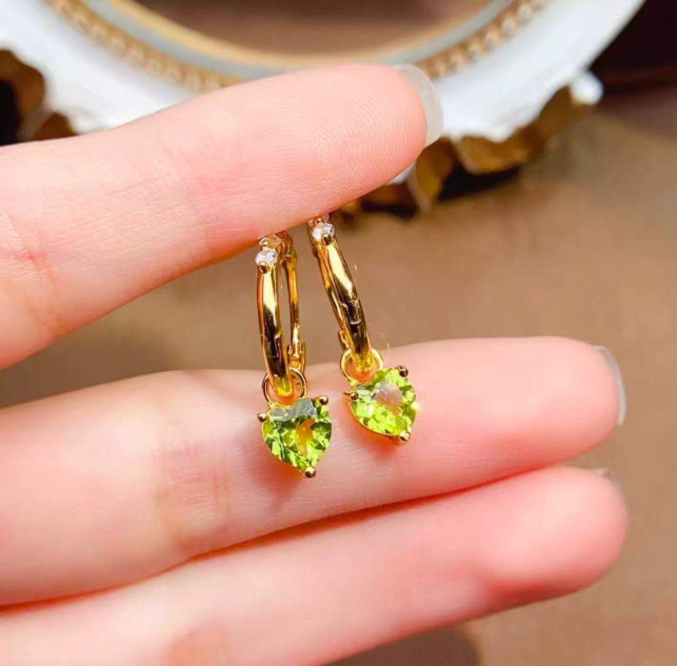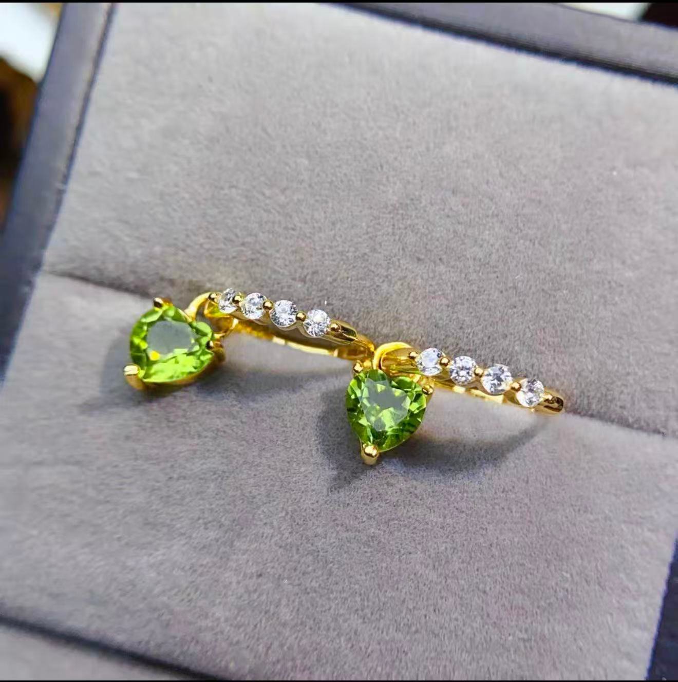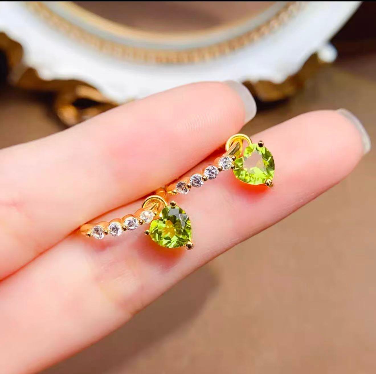 Natural Peridot Earrings – S925 Sterling Silver Inlaid, Elegant & Classy with Gorgeous Color Matching. Main Stone: 6×6mm.
