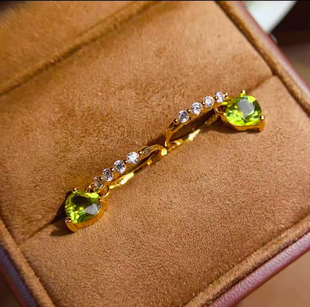 Natural Peridot condenses the vibrant green of the wild, glowing like a dewdrop-kissed, freshly unfurled leaf. Accented with the subtle sparkle of pavé diamonds, it remains transparent and refreshingly understated. A simple claw setting elegantly uplifts the main stone and diamonds. With every gentle sway at your ears, an undeniable, earthy charm is revealed. It adds a fresh vitality to your daily wear and a touch of playful grace to your date nights, allowing the gentle, forest-like tenderness and refined elegance to accompany your every move.