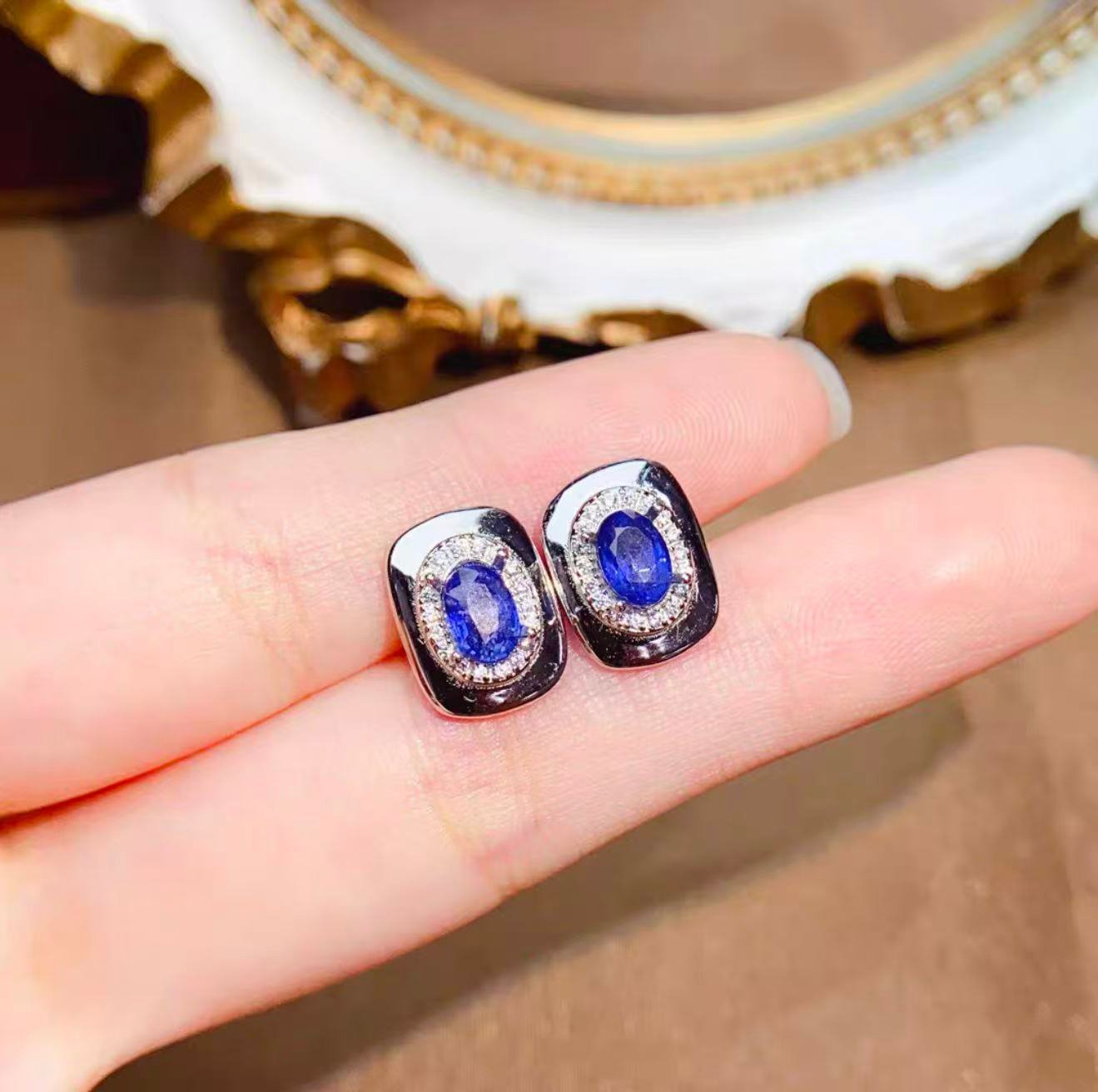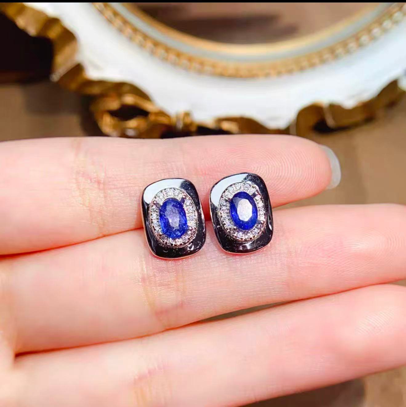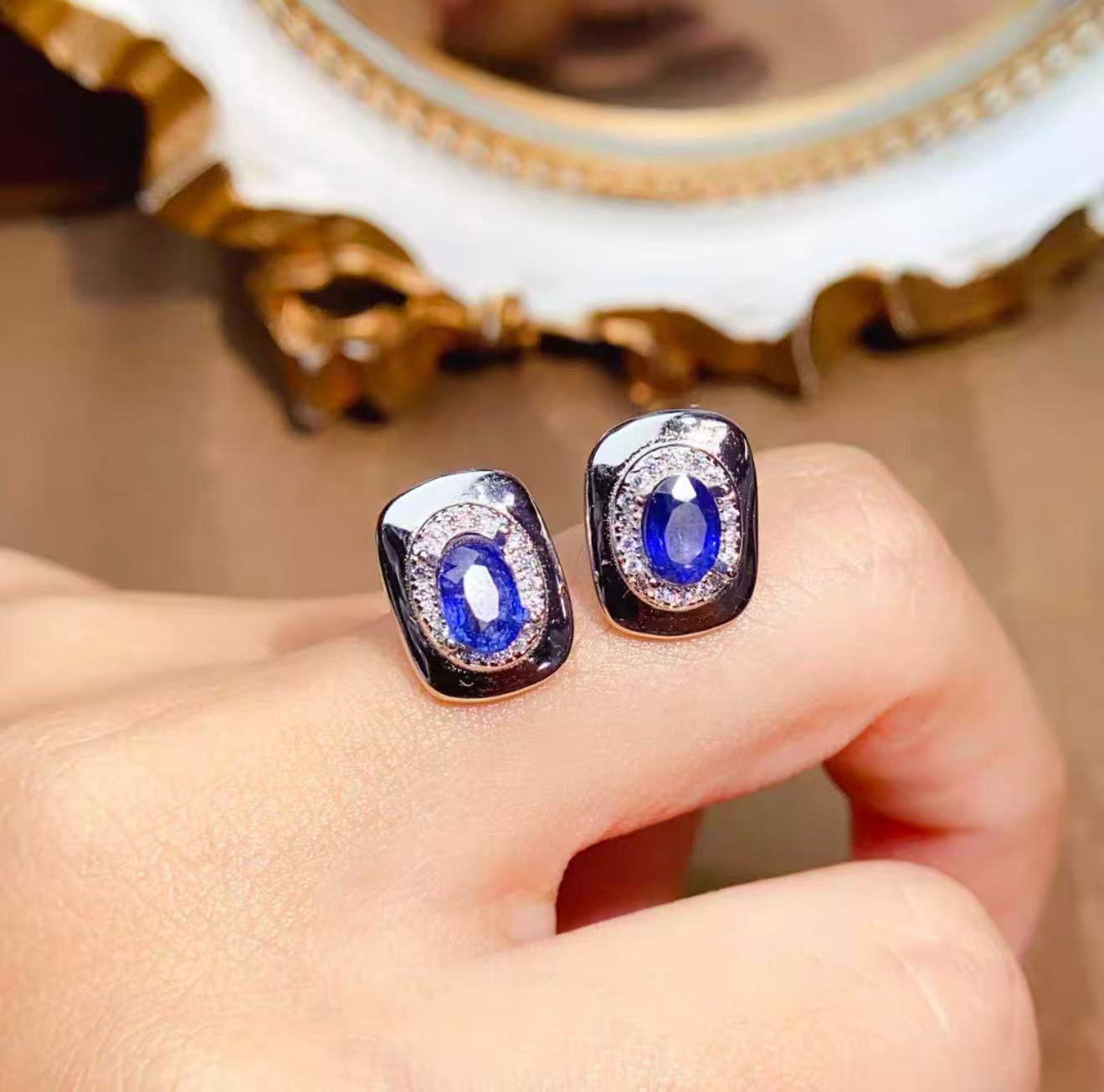 Natural Sapphire Earrings – S925 Sterling Silver Inlaid, Elegant & Classy with Stunning Color Matching. Main Stone: 4×6mm.