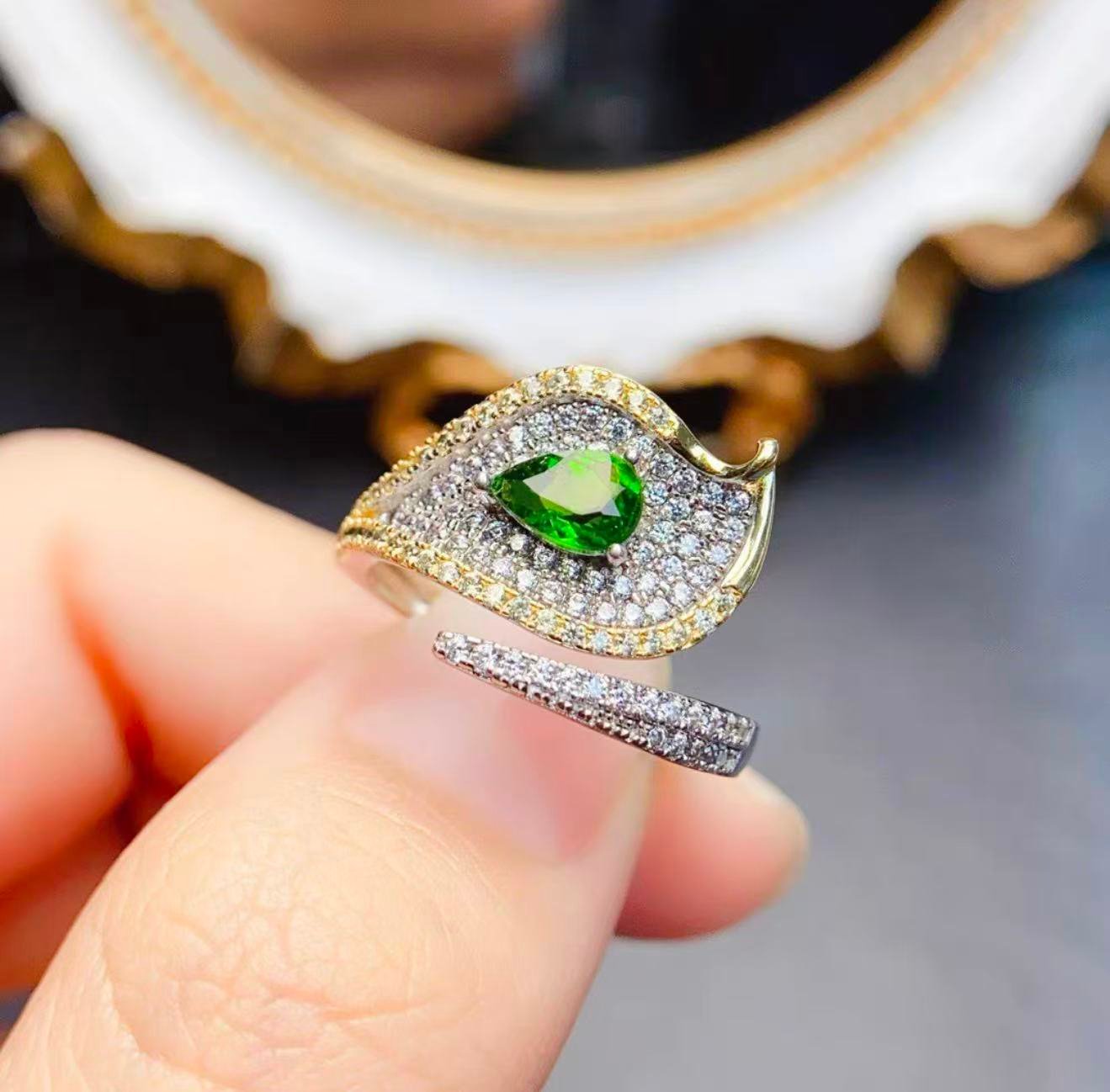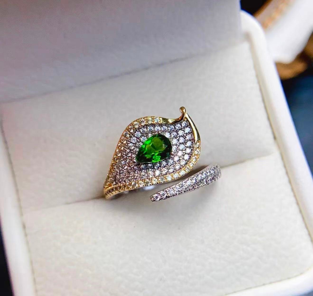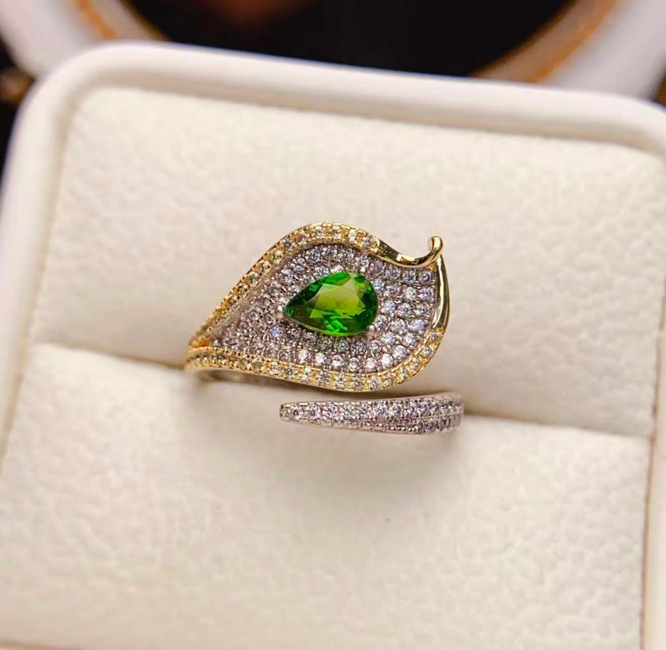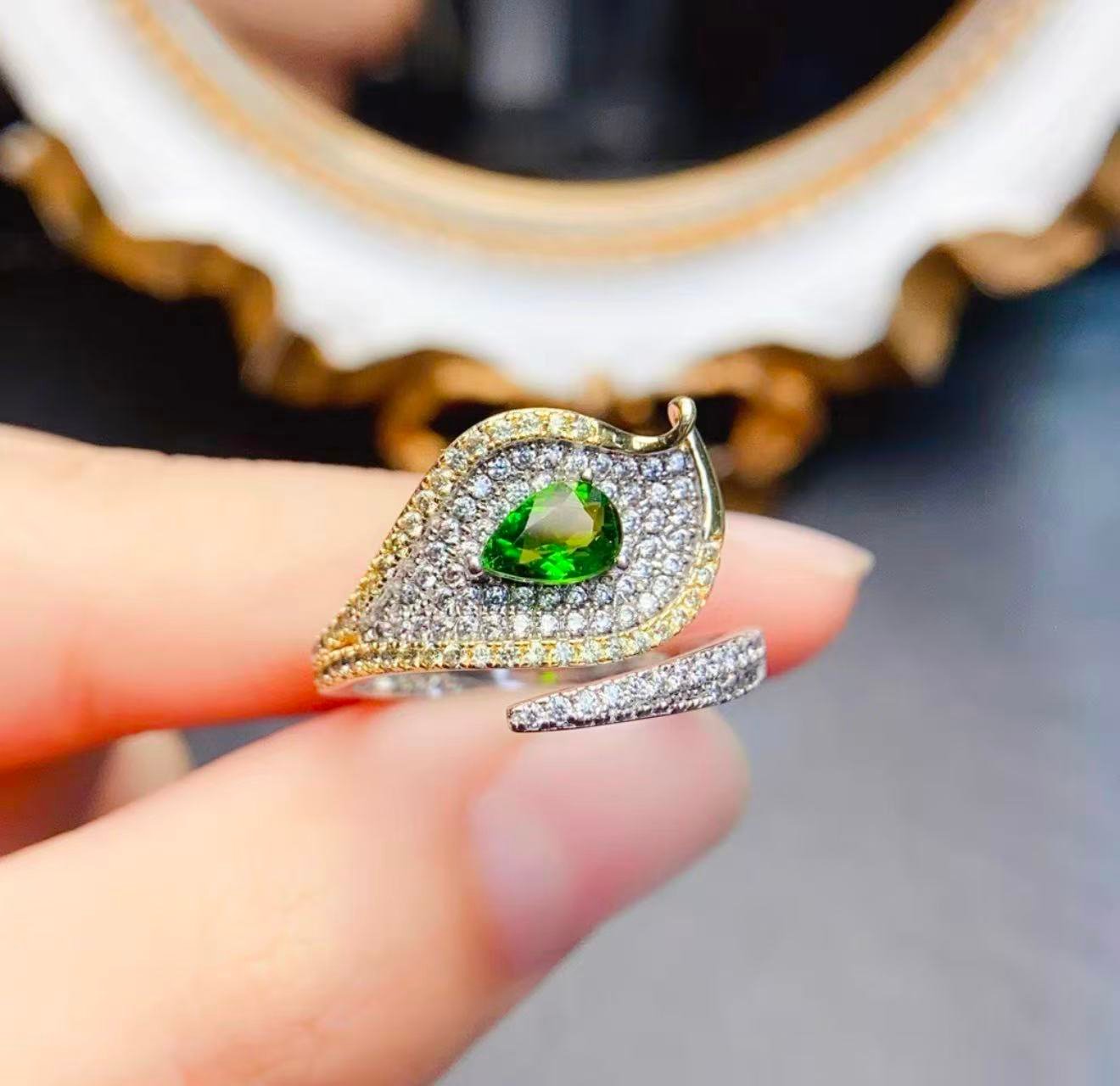 Natural Diopside Ring – S925 Sterling Silver Inlaid, Elegant & Classy with Gorgeous Color Matching. Main Stone: 4×6mm.