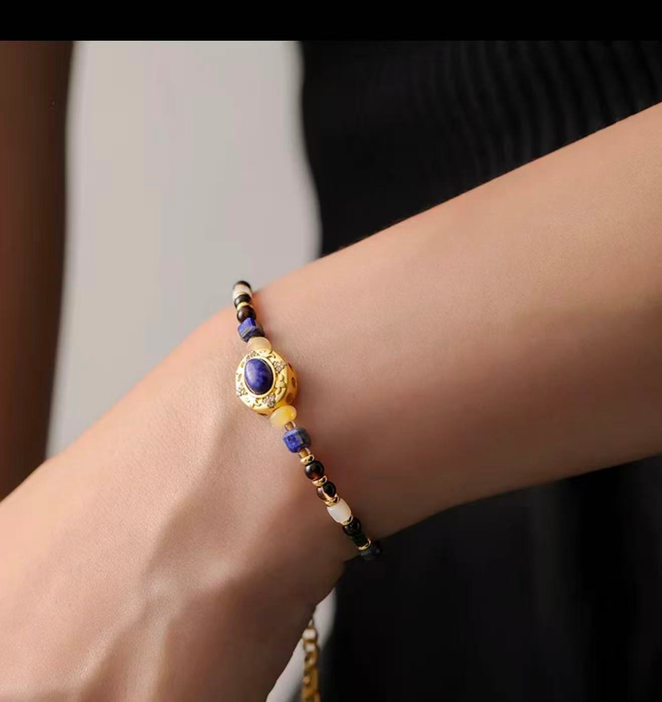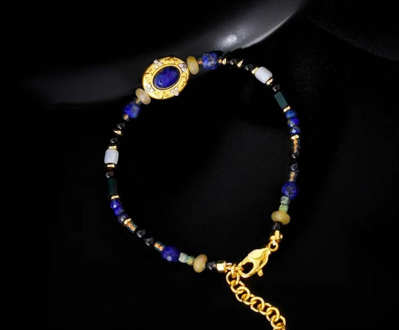 Material: 18K Gold-Plated Copper + Lapis Lazuli + Tiger’s Eye
