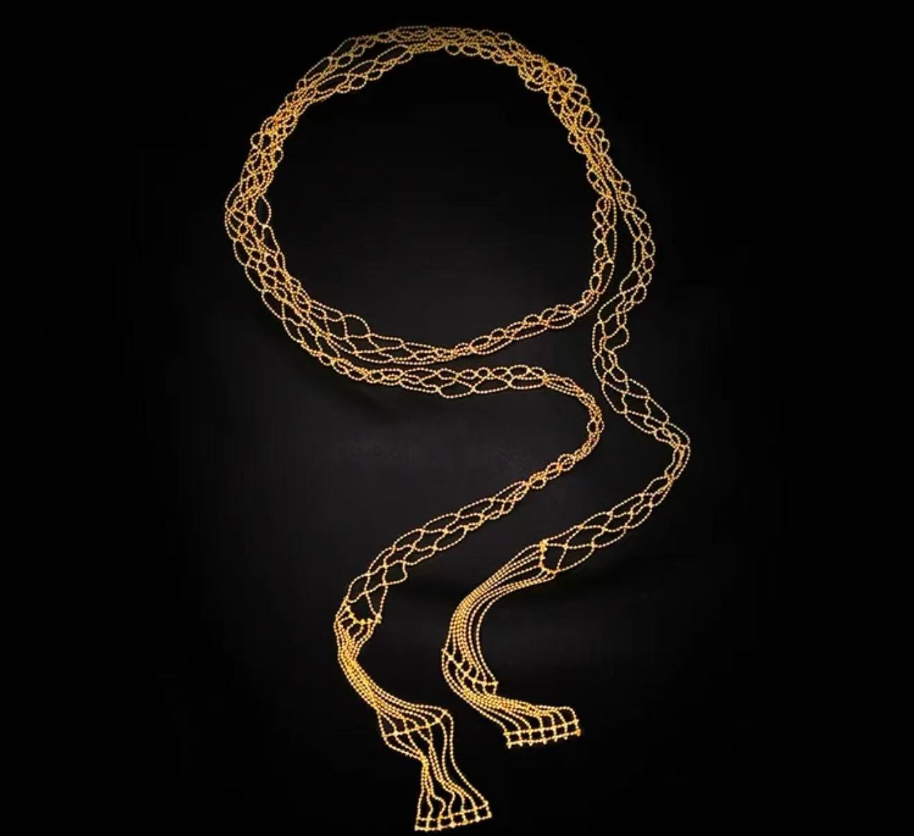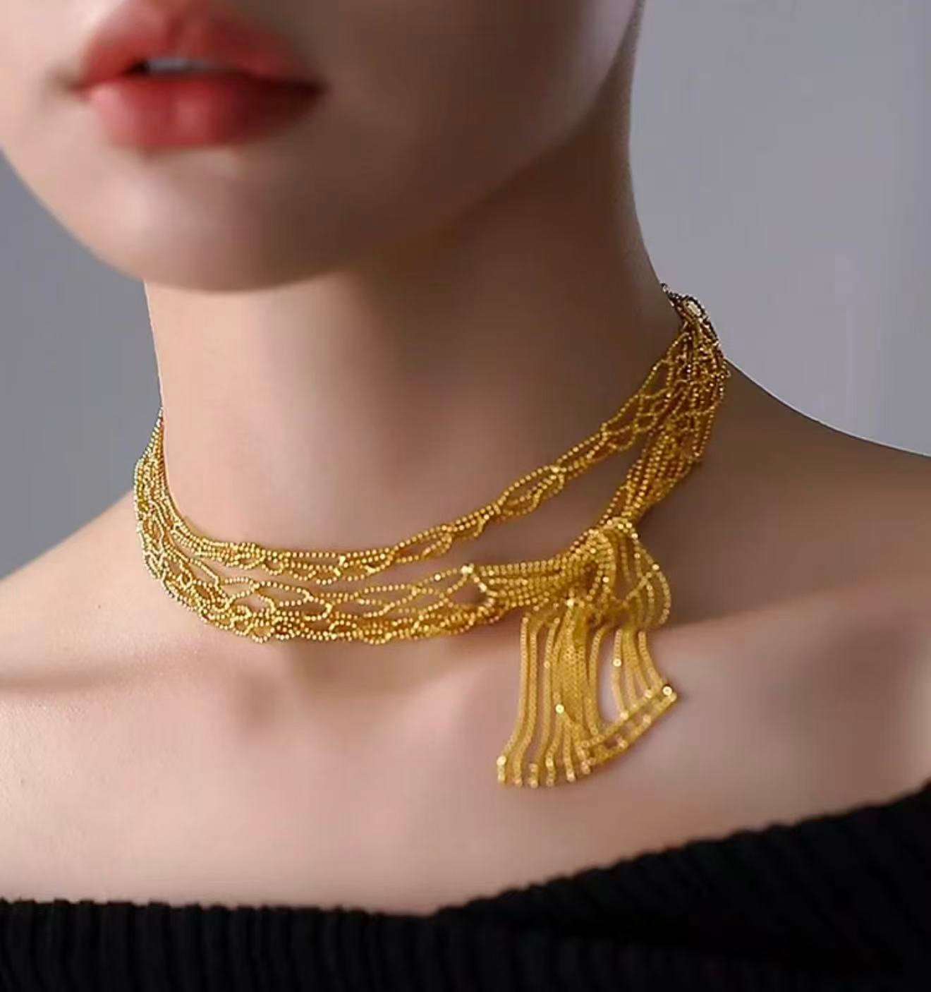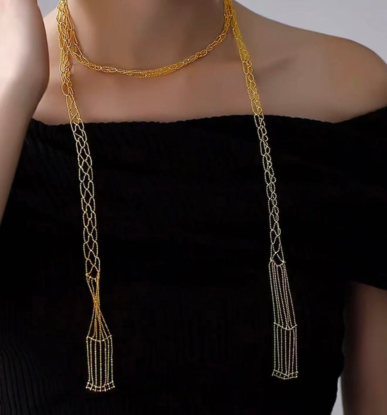 Meet the necklace designed specifically to complement your favorite, coziest long sweater. Stripped of all unnecessary detail, it defines your silhouette with pure, fluid lines and a subtle glow, creating a focal point of understated elegance.